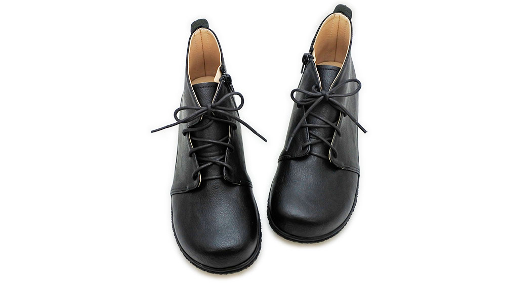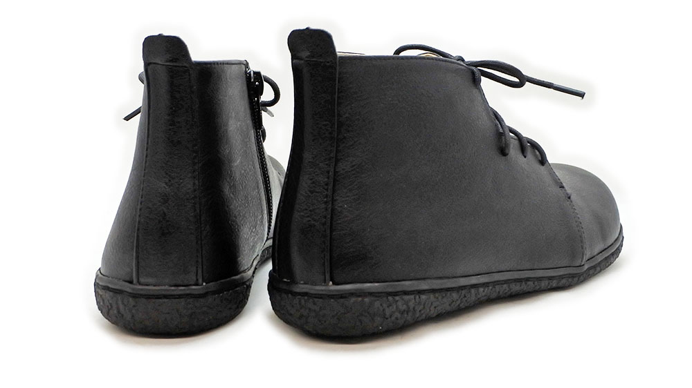 丸みのあるフォルムが可愛らしい印象のレースアップショートブーツ。 アッパーは質感の良い合皮素材で、柔らかく履き心地が良いです。レースアップとサイドファスナーがアクセントに。インソールもふかふかしていて気持ちよく、足全体がやさしく包み込まれている感覚。つま先部分は広くゆるやかなアーチで、指先を締め付けずゆったりリラックスして履いていただけます。 短めの丈なので、スカートにもパンツスタイルにも合わせやすく、靴下とのコーディネートも楽しめます♪