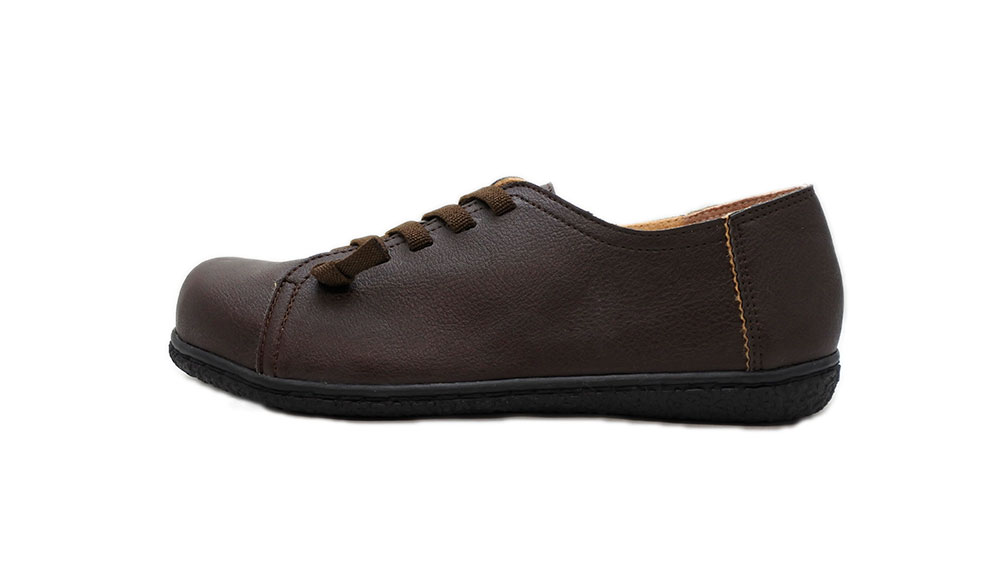 レースアップに同色のゴムをあしらい、脱ぎ履きしやすい作りとなっています。インソールがふかふかしていて気持ちよく、足全体がやさしく包み込まれている感覚。つま先部分は広くゆるやかなアーチで、指先を締め付けずゆったりリラックスして履いていただけます。カジュアルにもきちんとした装いにもマッチするデザインです♪