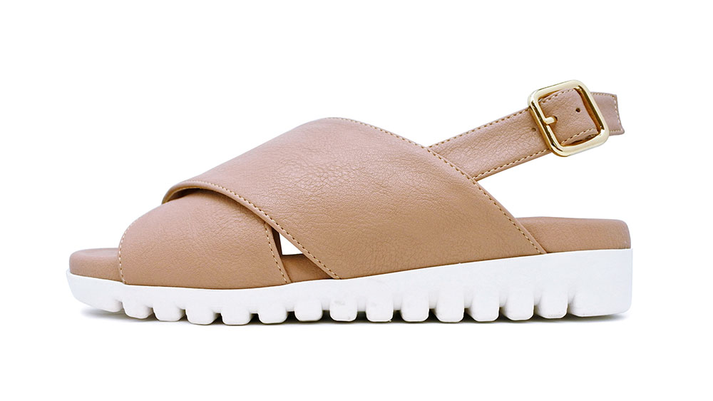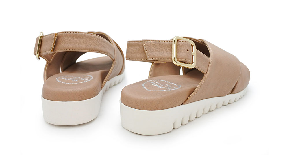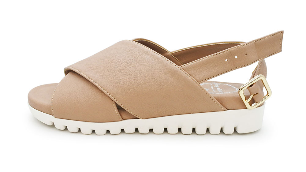 バックストラップクロスベルトコンフォートサンダル。