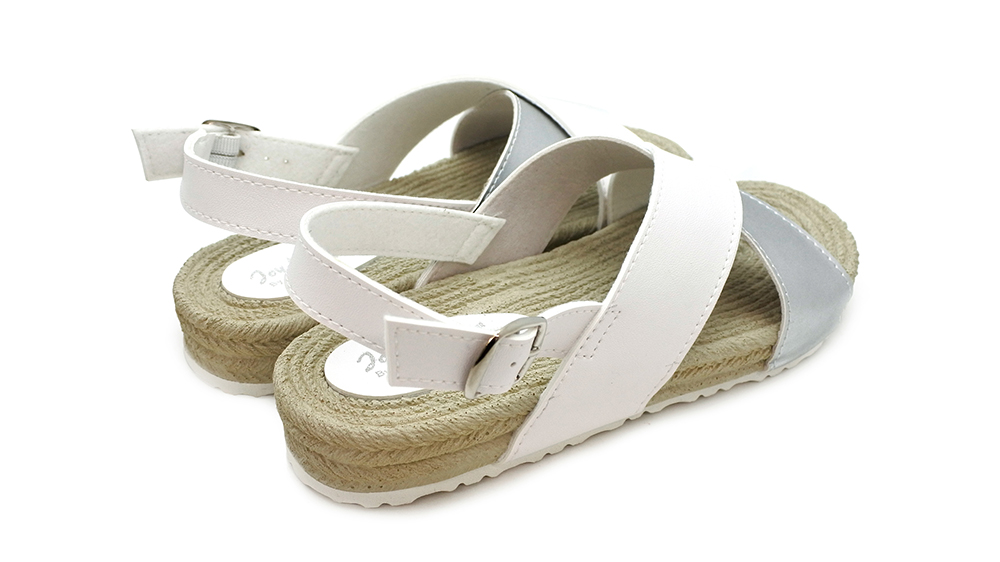 見た目はジュートのソールですが、発泡樹脂を使用しているため柔らかく軽量なサンダルとなっています。 足全体をしっかり支えるアッパーと、脱ぎ履きしやすい バックストラップで、安定感のある履き心地です。 バックストラップは先端にゴムを使用し、バックルは5段階調節できます。