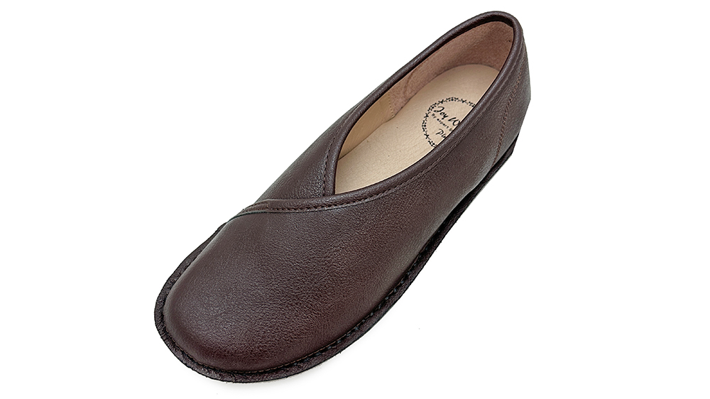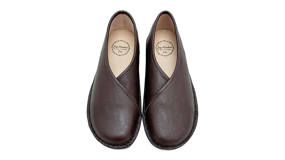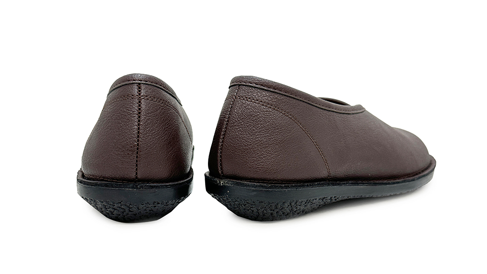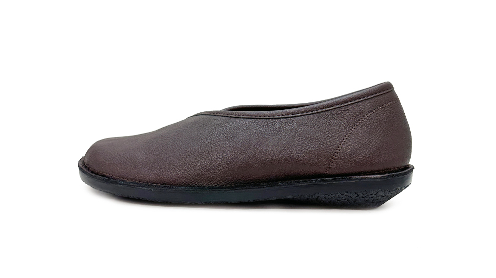 ステッチダウンデザインのスリッポンシューズ。 アッパーは重なったデザインとなっており、履き口が広がるためスムーズに脱ぎ履きができます。 インソールもふかふかしていて気持ちよく、足全体がやさしく包まれている感覚。 アウトソールはウェッジが効いており履いた時のシルエットがスマートに見えます。